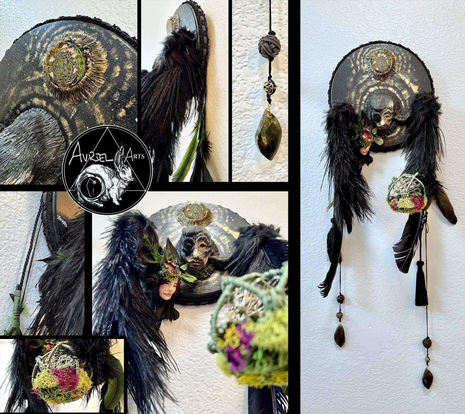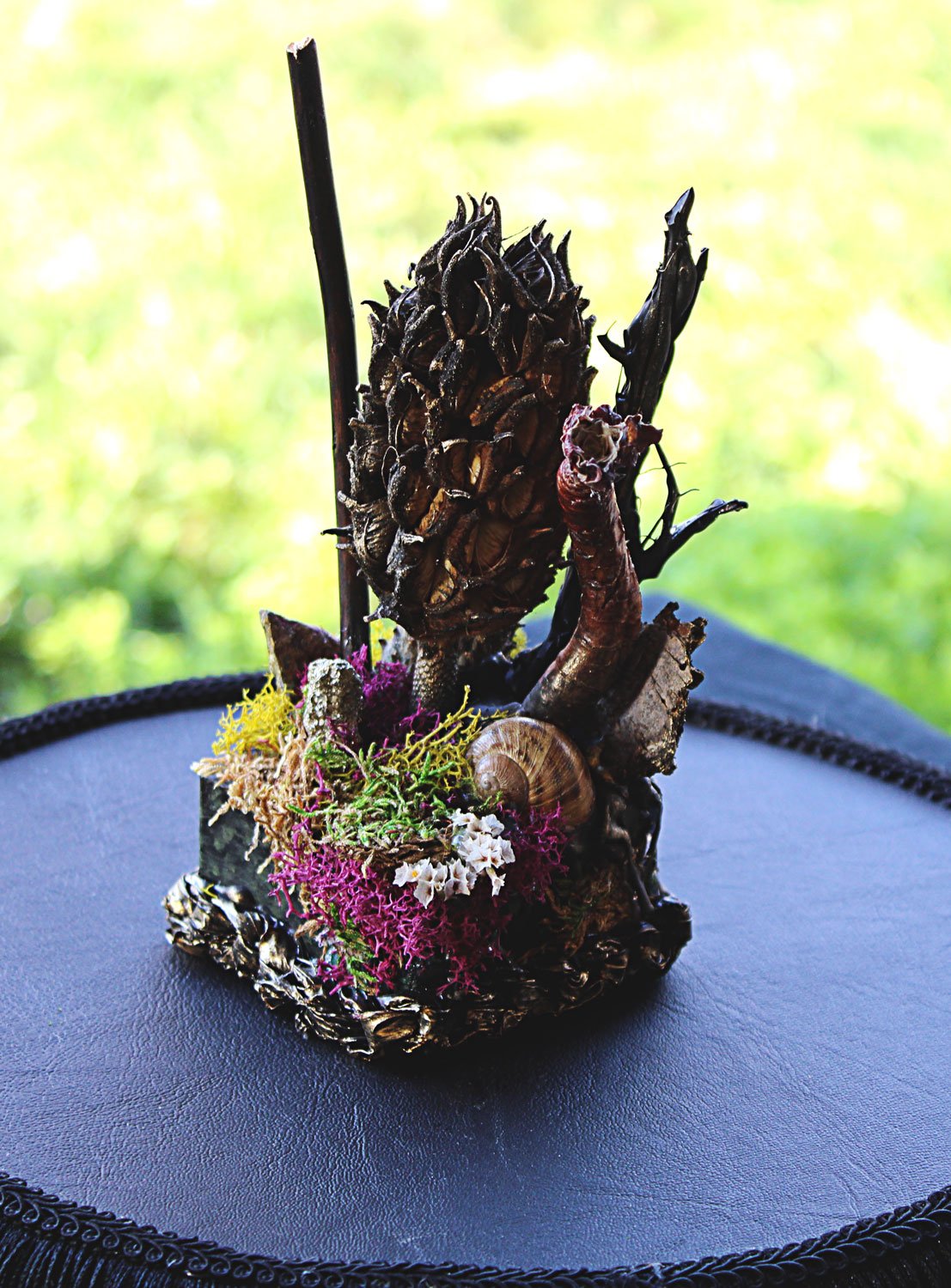 Mixed-media on wood + nature elements.