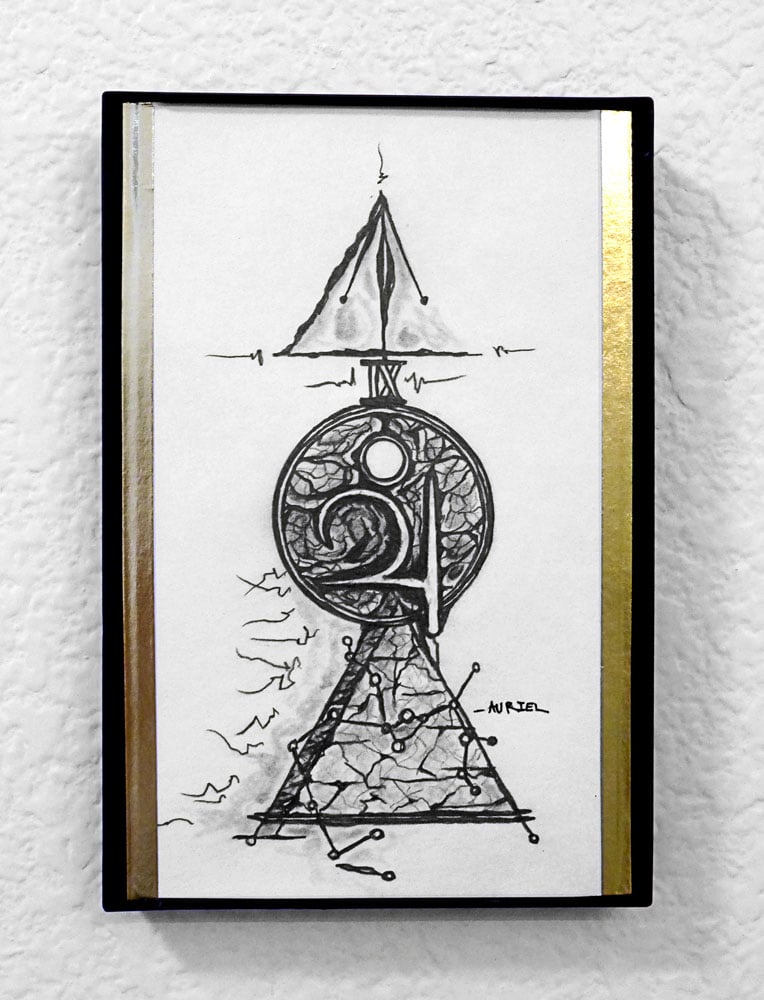 Mixed-Media on drawing paper with custom frame.